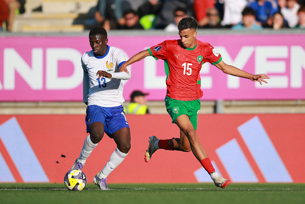 Les Lionceaux de l’Atlas auraient pu tuer le match cinq minutes plus tard, mais Fouad Zahouani manquait sa reprise face au but vide. Dans la foulée, les Bleuets reprenaient espoir : Ilane Touré forçait Benchaouch à une superbe parade juste avant la pause.